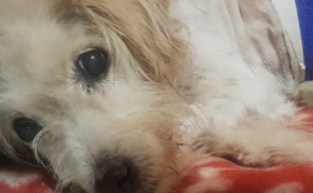The puppy lifted his head weakly, his eyes glassy from fear and exhaustion. His tiny body shivered violently. His fur was dirty, matted, and sprinkled with blood where the rats had bitten him. His back feet were bent unnaturally inward, twisted in ways that made Mira’s stomach tighten in shock.