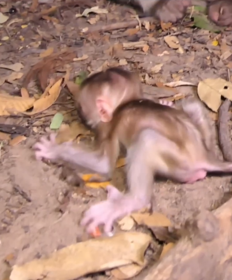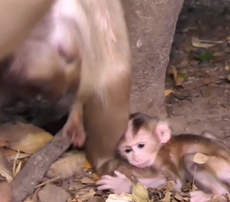 When it discovers a small puddle of water left from last night’s rain, its eyes widen even more. Water is new. Water moves. Water splashes. The baby approaches it cautiously, peeks at its own reflection, then taps the surface with its tiny hand. Splash! Water jumps into the air, surprising the baby, who jumps back and squeaks. Then, realizing nothing bad happened, it taps again—harder this time. Splash! More water. More fun. Soon the baby monkey is splashing, sliding, and playing with complete joy.