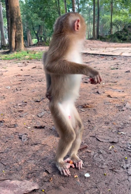 Then—out of pure monkey pride—he shook his head, stood up, and acted like nothing happened. He pretended the whole thing was a perfectly normal part of his morning routine. He even walked away with the same confident strut as before, as if saying: