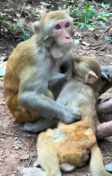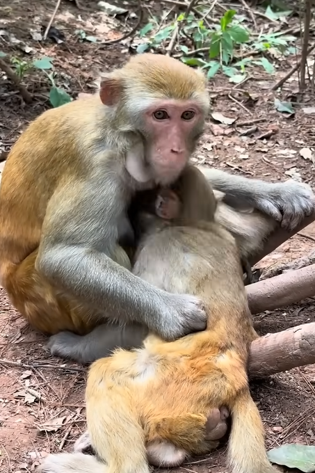 Within the first few hours, Bobo had already discovered its favorite thing: grabbing anything it could see with its tiny hands. Leaves, twigs, and even Lila’s fur became objects of fascination. Every time Bobo grabbed something, it made a high-pitched squeak that sounded more like a giggle than a cry. The older monkeys in the troop watched with amusement, shaking their heads and smiling at the newborn’s antics.