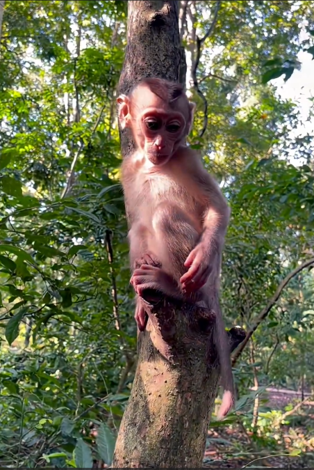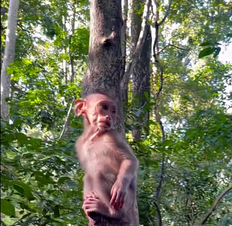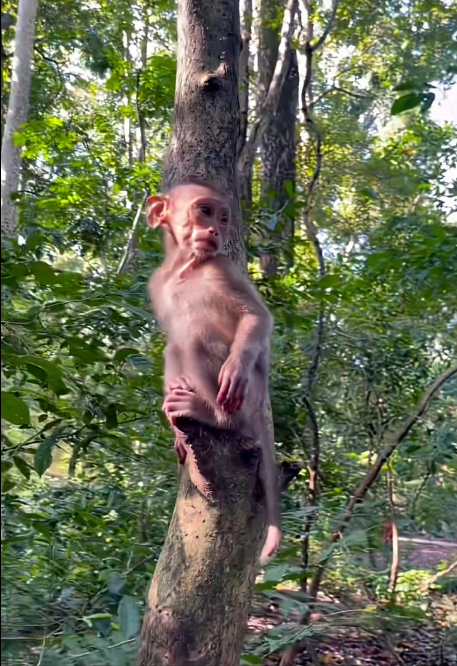 Soon, Coco’s playful energy returned. With a gleeful squeak, the little monkey started exploring the forest floor, hopping over small roots, and poking at interesting leaves. Coco discovered a small puddle and, of course, had to test it. Splashing tiny hands in the water, squeaking with glee at each ripple, Coco rolled in the puddle for a moment before shaking off droplets in a miniature water dance. Each movement seemed choreographed to maximize cuteness. Even the usually grumpy elder monkeys were seen smiling, shaking their heads, and muttering, “How is this even legal? Am I supposed to be this cute lol?? 😆💕”