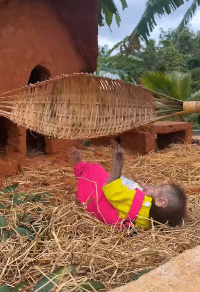 The next morning, Bon woke up with renewed excitement. He carried his blanket to the garden and sat near the hammock. But instead of climbing right away, he placed his tiny hands on the cloth and slowly tugged it. He tested how it moved. He learned how to balance himself. The caretaker supported him from below, making sure he felt safe.