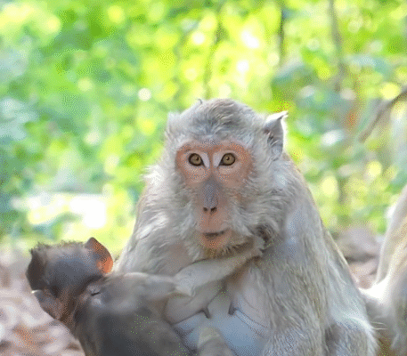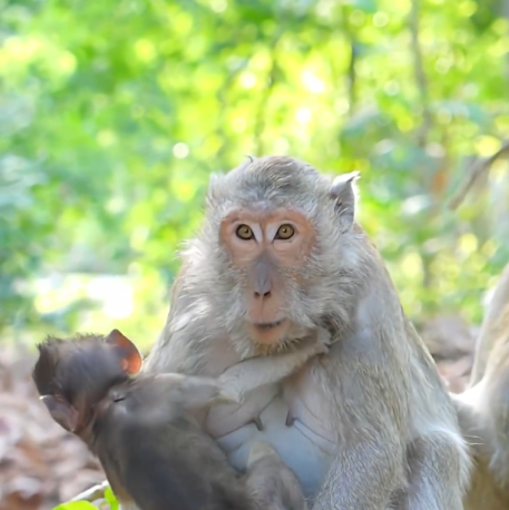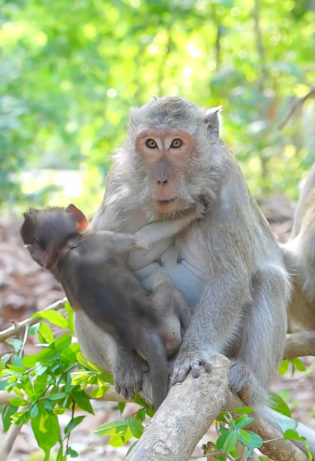 Every morning, the troop gathered around the old banyan tree, which stood like a guardian of the land. The baby monkey—still new to the world—clung to its mother’s belly as she moved gracefully across the low branches. Its tiny hands, barely the size of a walnut, held on tightly, always exploring, always touching, as if trying to understand the whole world by feel.