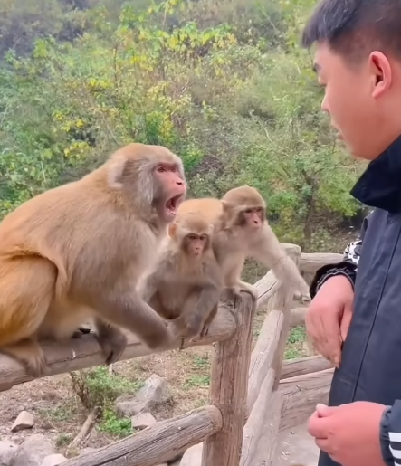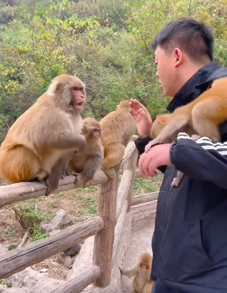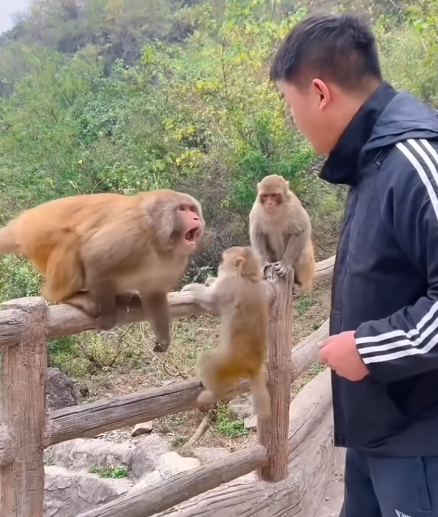 The beginning of a new friendship—powered by bread, bananas, and pure monkey curiosity.