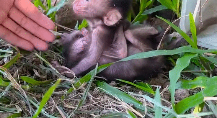Soon, she heard soft footsteps approaching. It was her mother, Lala, carrying a ripe banana in her hand. She sat beside Mimi and offered the fruit. The baby monkey accepted it gladly, peeling it with her tiny fingers. She took slow, relaxed bites, savoring the sweetness.