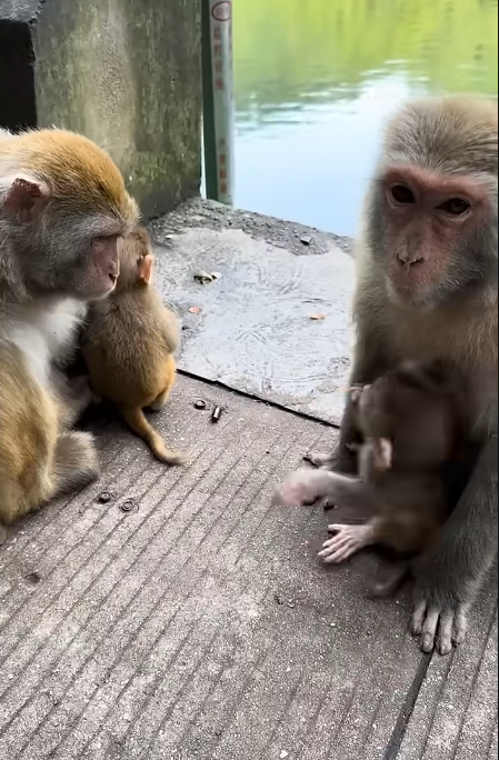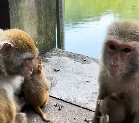 It happened one afternoon. The mother monkey had spotted a ripe mango dangling high on a branch, just out of reach. She set the baby down gently on a sturdy limb below, intending for it to stay while she retrieved the fruit.