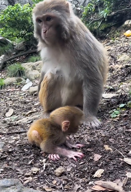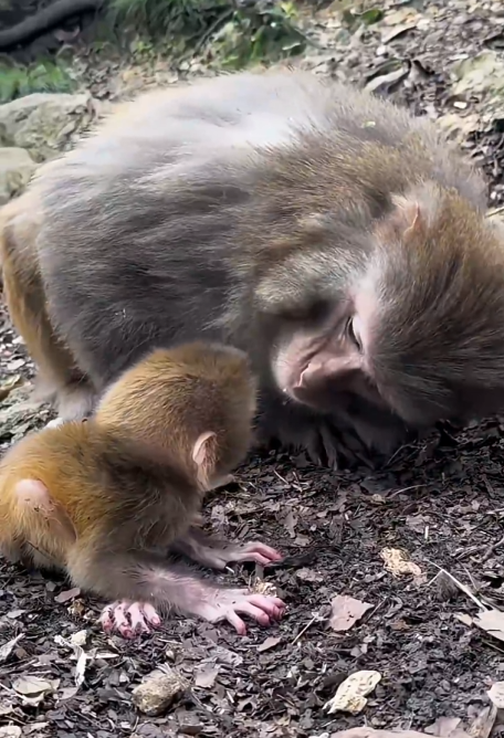 The baby monkey was tiny, barely a few weeks old. Its soft fur, damp from the morning dew, clung to its fragile body. Its eyes were wide with confusion, filled with a mix of fear and grief. It had known nothing but the warmth, protection, and guidance of its mother. And now, suddenly, that safety was gone.