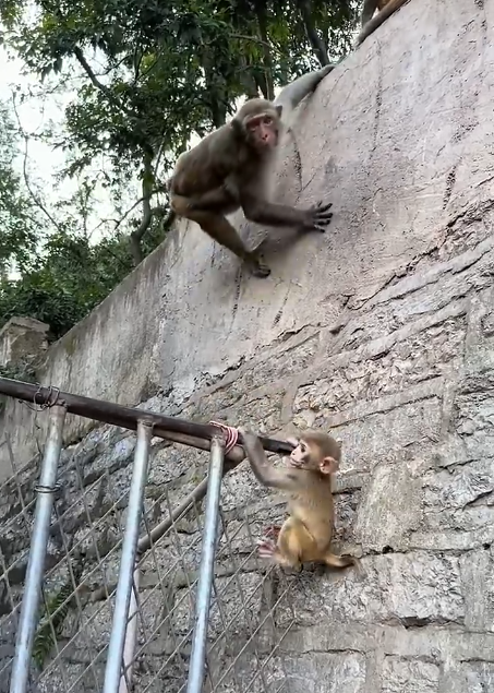 Occasionally, the baby would squeak or hesitate, unsure about a jump or the sway of a branch. But the mother’s reassuring presence made it bold enough to continue. With her guiding tail and gentle gestures, she showed the little monkey that challenges were easier when faced together.