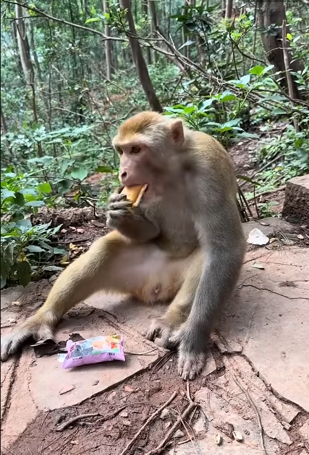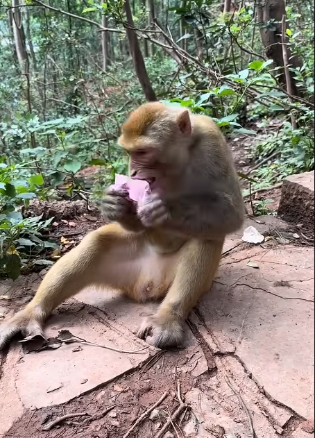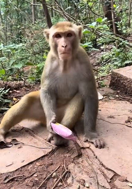 The troop gathered around, relieved that both monkeys were unharmed. Some patted Miko’s back—making him cringe—and others teased him by shaking mud-filled leaves near his face. His dramatic expression returned instantly, causing more laughter to echo through the forest.