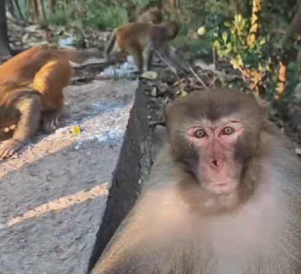 A young guy knelt and held out his phone. “Smile, monkey!”