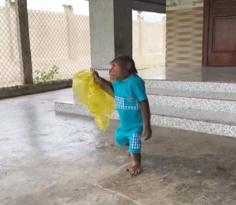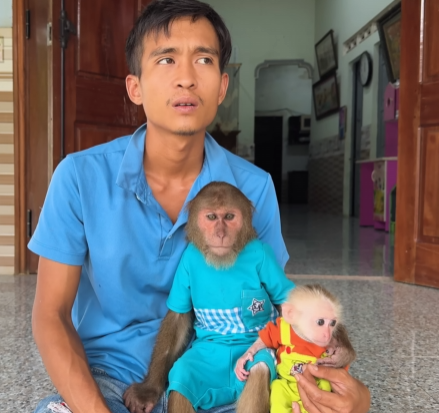 It was a lively morning at the market when a few tourists arrived, holding cameras, snacks, and wide smiles. They’d heard rumors about a “clever monkey who behaves like a tiny human,” and naturally, they wanted to see him.