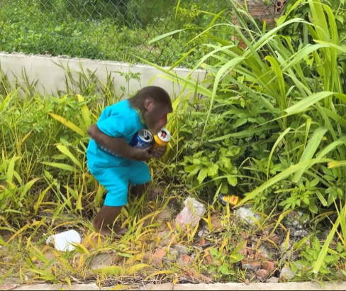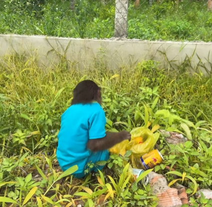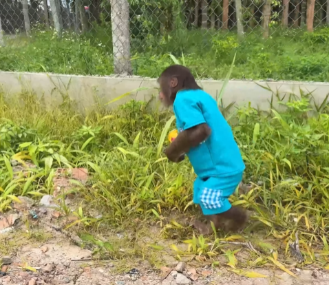 CUTIS didn’t react like a normal monkey. Instead of running away or acting shy, he placed both hands on his waist and stared at them like:
