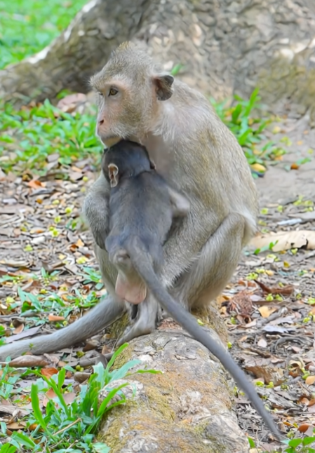 The baby monkey chirped softly in response, leaning forward and reaching for the bottle. He wrapped both hands around itâwell, as much as his tiny fingers allowedâand drank eagerly, taking in the warm comfort that only a loving meal could bring. Milk dribbled from the corners of his mouth, but Mira didnât mind. She wiped it gently, smiling as his belly filled and his excitement settled into slow, happy sips.