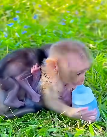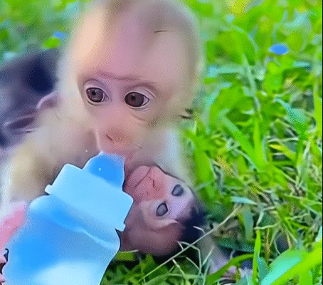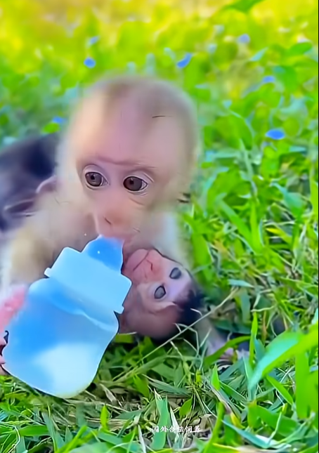 The animals watching nearby let out soft sounds—like they, too, were amused by the baby monkey’s feast.