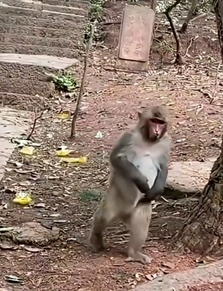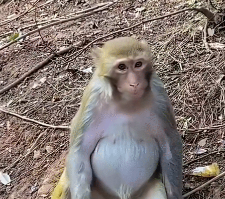 The jungle was alive with its usual hum—birds chirping, leaves rustling in the wind, and insects singing their continuous symphony—but deep in the heart of the dense trees, one small corner of the forest seemed to vibrate with a different energy: tension, frustration, and worry. That was where I first saw her: a pregnant monkey sitting on a low branch, her fur slightly ruffled, her eyes wide with distress.