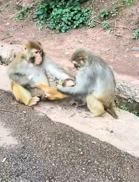 At first, I assumed it had been separated from its mother during play. Monkeys are curious, agile, and prone to misjudging distances between branches, so an accidental fall or separation is always possible. But as I observed, I realized that something more unusual had happened. This baby was not crying out for its mother. Its small voice was weak, tentative, almost as if it had accepted that the mother it expected might never return.