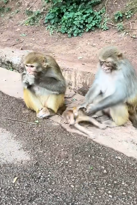 The other monkeys in the area were watching from a distance. Their eyes were wary, their chatter cautious. Some young monkeys approached curiously but quickly retreated when the baby didn’t respond as expected. Even the older monkeys, usually so protective, seemed confused. It was as if the forest itself was questioning: who belongs to this tiny soul? Who will step forward to care for it?