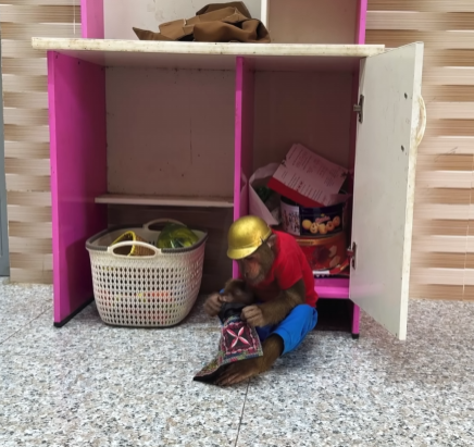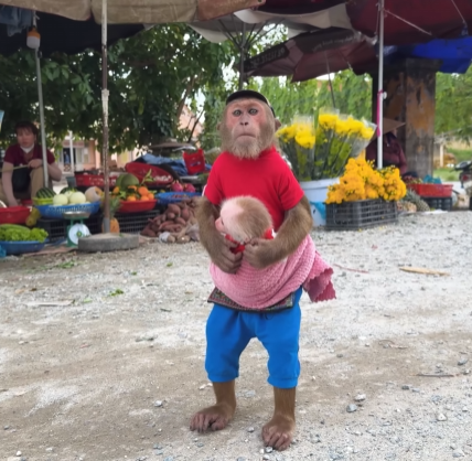 The afternoon sun cast long shadows, and still, the baby monkey insisted on following CUTIS. Whenever CUTIS moved, the monkey mirrored his actions, learning instinctively, ensuring nothing was forgotten. When CUTIS brought fresh water, the monkey made sure it was placed correctly. When CUTIS adjusted Momâs bedding, the monkey helped smooth it out. It was a level of devotion and teamwork that left the villagers speechless.