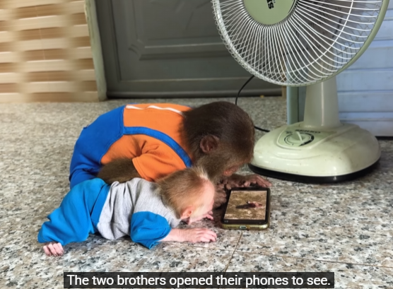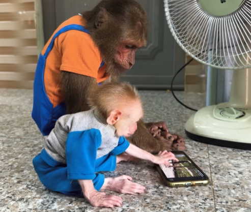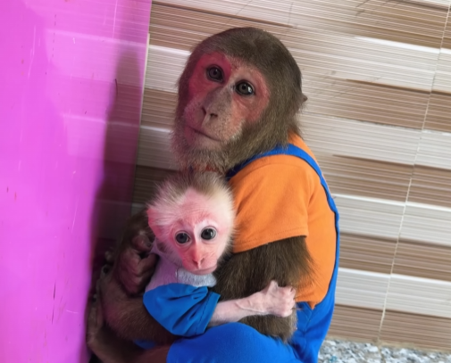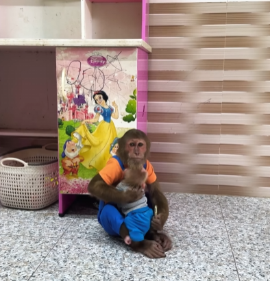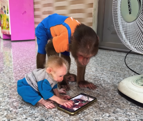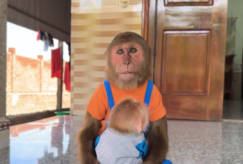 It started subtly. CUTIS trotted slowly toward Mom, his eyes squinting as if he were irritated, lips slightly curled in a fake growl. The baby monkey followed suit, hopping behind him with tiny fists raised, puffing out its chest and making exaggerated squeaks. Momâs ears twitched at the strange behavior. âHmm? What are you two doing?â she thought, tilting her head curiously.