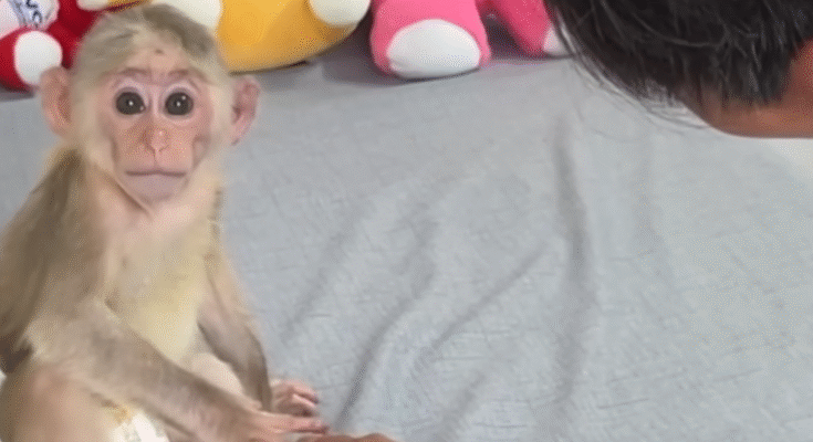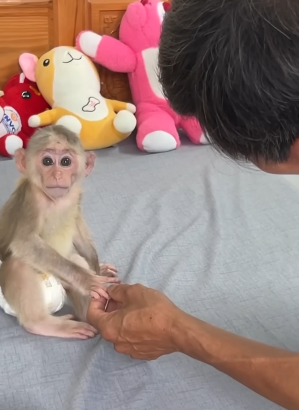 Morning sunlight filtered through the wooden windows of the small countryside house, painting the room in golden stripes. In the corner, on a soft blanket, little monkey Xuka stretched her tiny arms above her head and let out a soft squeaky yawn. She blinked sleepily, her fluffy eyebrows lifting as she looked around for the one person she always wanted to see first thing in the morning—her dad, Bopa.