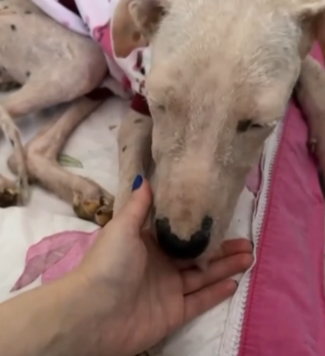 They pressed their bodies together tightly. Luna covered Nori with her head, licking her ears, her neck, her face—checking every inch as if making sure she was real. Nori sobbed in the only way dogs can: her entire body trembling, her tail tucked so tightly that it nearly disappeared, her nose buried in her sister’s fur.