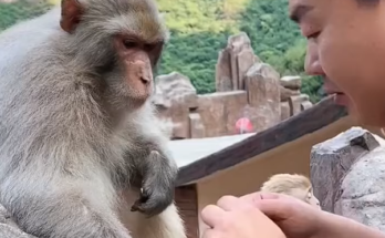 For the mother monkey, it wasn’t just about food. It was about letting go of one of the tenderest pieces of motherhood. The long nights of nursing. The warmth of having him pressed against her chest. The rhythm of their connection. The instinctive closeness.