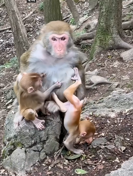 She was grooming herself peacefully, thinking it would be one of those rare, calm days. But that illusion shattered when Tiko somersaulted into her lap, grabbed her cheeks, and loudly bit his own teeth together right in her face.