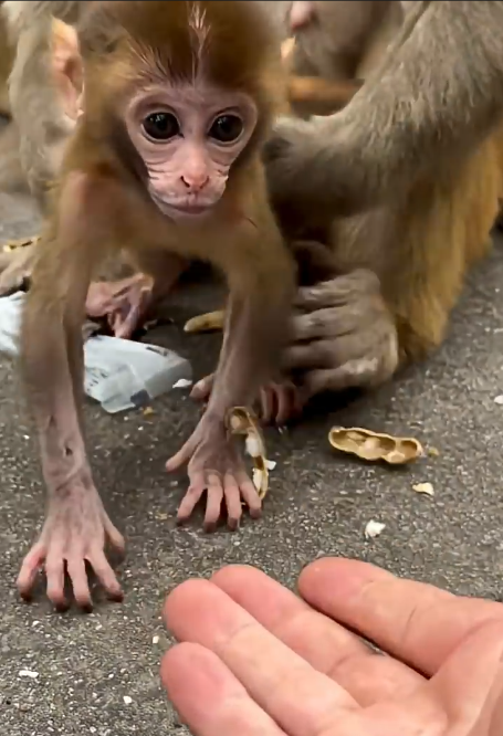 One morning, a group of humans arrived at the forest, carrying baskets full of fruits. They were researchers, or perhaps tourists, but their presence sent a ripple of excitement—and anxiety—through the troop. Monkeys of all ages chattered nervously, hiding in the canopy, while the younger ones clung tightly to their mothers. Among them, Miko observed everything, her eyes following the humans’ every move. She noticed their habits: how they placed baskets on the ground and how they tended to leave a path of scattered fruit in their wake.