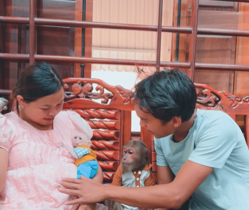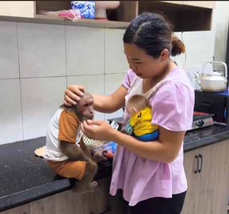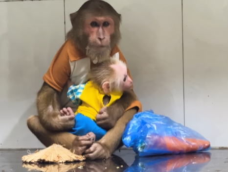 Pregnant Mom had always been the heart of the little family. She was gentle but firm, playful yet wise, loving yet disciplined. Now, with her growing belly and her tiring body, she needed rest more than ever. Still, her instincts kept her watching over her children constantly. She worried about them, especially the baby monkey who depended on her for warmth, love, and guidance. But this time, she wasn’t alone—her older son, CUTIS, rose to support her in the most unexpected and heartwarming ways.