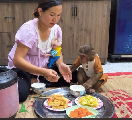 In the quiet corner of the sanctuary, where sunlight filtered through the tall trees and turned every leaf into a glowing emerald, the little monkey family began their day. Life inside the troop had always been filled with play, curiosity, mischief, and endless learning—but today carried a different kind of energy. CUTIS, the clever young monkey who had captured so many hearts, found himself stepping into a new role: the protector and caretaker of his tiny baby sibling, all while their mother—round-bellied and moving slower these days—navigated her pregnancy with patience and exhaustion.