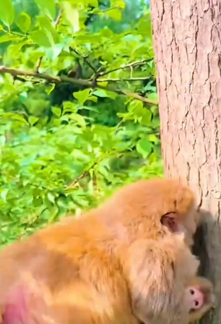 The baby monkey pressed his little face into her chest, seeking the safety he had always known. His body shivered with leftover fear, and Lila wrapped her tail around him protectively, as if trying to rebuild a broken world.