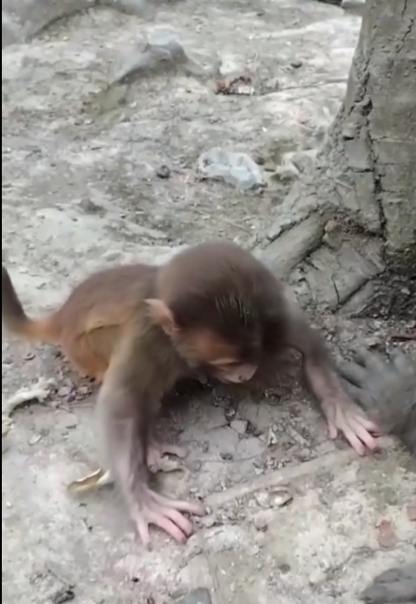The baby monkey, the innocent child she loved more than anything, tumbled off the branch and fell.