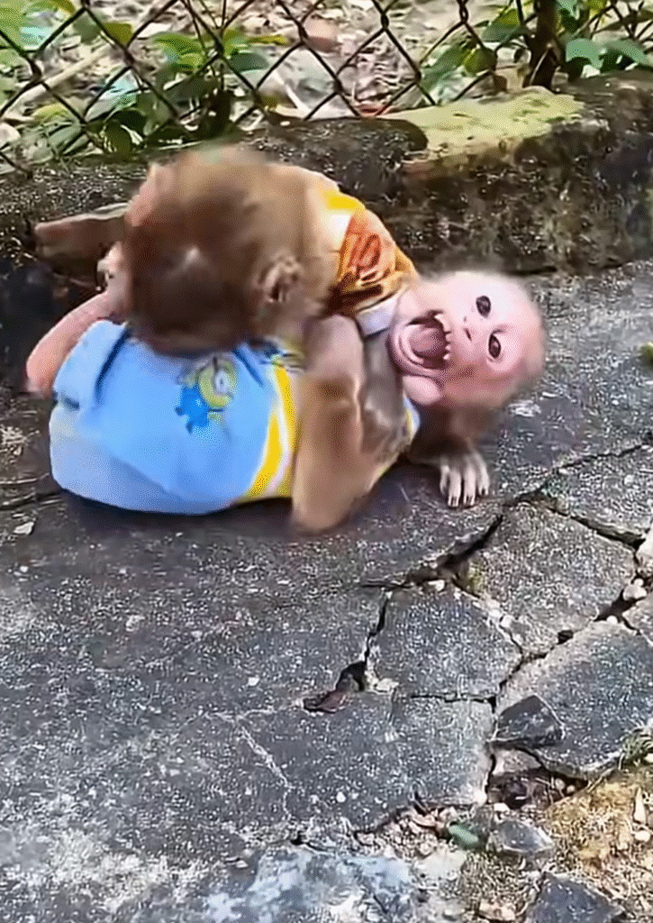 But the funniest part was what happened right after: Manki held the banana proudly, slipped on a leaf, spun around twice, and landed softly on Sot’s lap like a tiny baby.