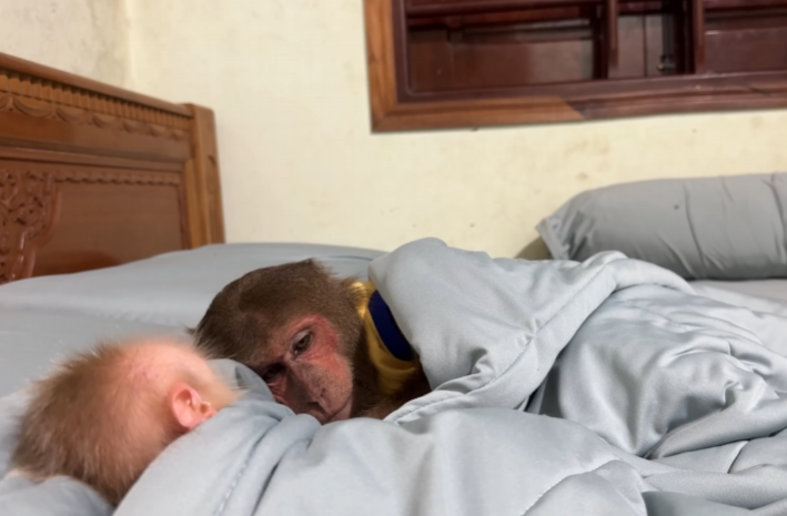 Baby Monkey snuggled into her warmth, whispering once more into the quiet jungle night, “Dad… please don’t go. But… I’ll wait for you.”