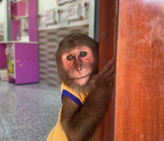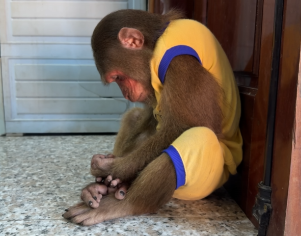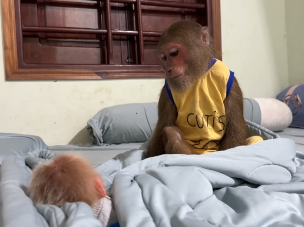 Baby Monkey shook his head again, his little fists pressing into Dad’s chest. “But… but what if you don’t come back? What if… what if something happens to you?” The thought of losing Dad, even for a moment, was unbearable. His small body trembled as sobs wracked him, and CUTIS hurried over to wrap her arms around him. “Shh… shh… it’s okay,” she whispered soothingly, her voice gentle and warm. “Dad will come back. He always does. You’re not alone.”
