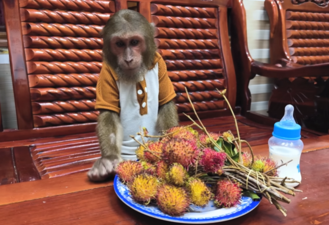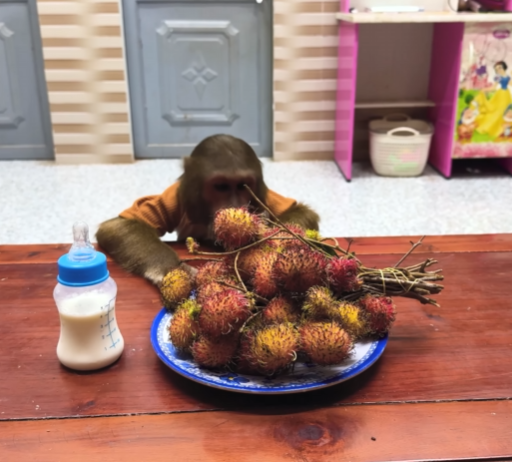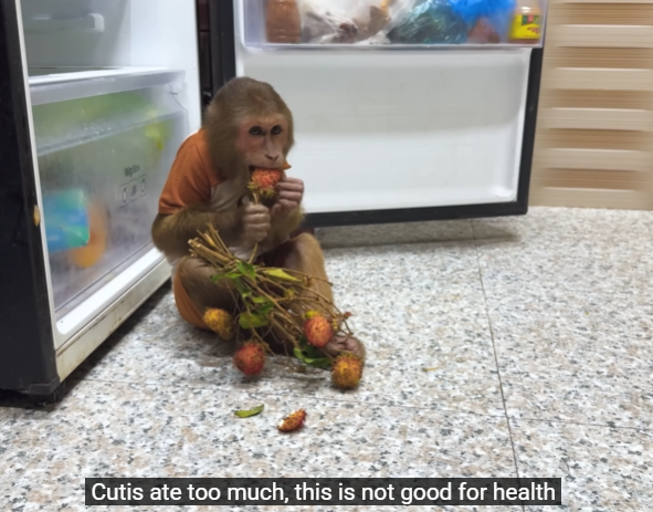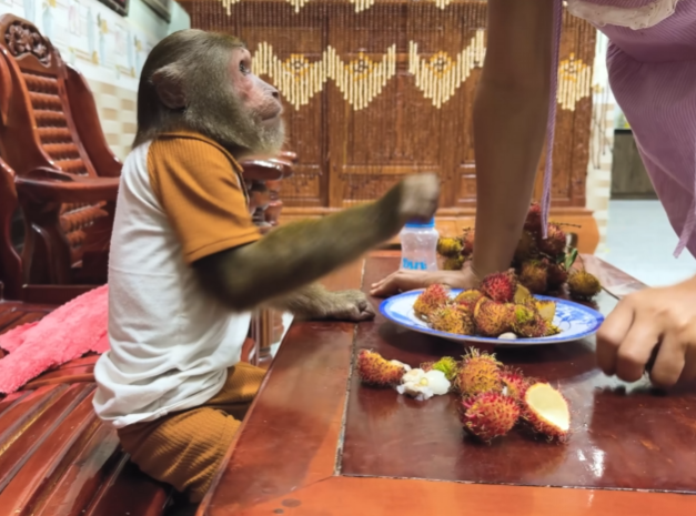 Baby Monkey jumped into Mom’s lap, still clapping and laughing at the incredible scene. “CUTIS is amazing, Mom! Look what he did!” he exclaimed, his small eyes shining with admiration. CUTIS glanced at Baby Monkey and gave him a small, triumphant nod, proud that his effort was being recognized.