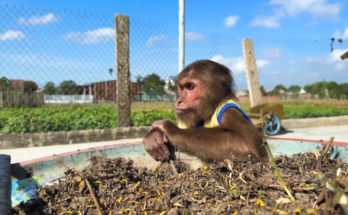 The rescuers paused, realizing force wouldn’t work. So Maya sat cross-legged in the mud, a few meters away, letting silence be her language. The minutes stretched. Rain began to fall lightly, dotting the ground and collecting in the folds of the tumor. Maya didn’t move.