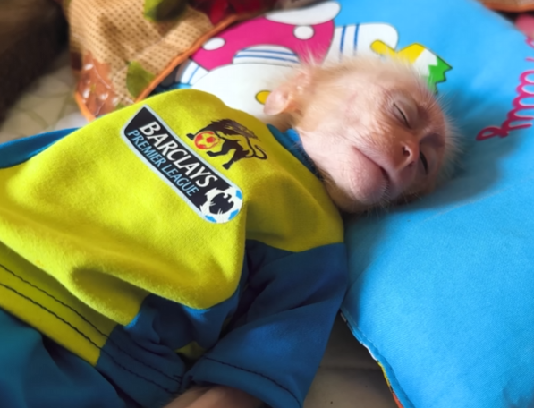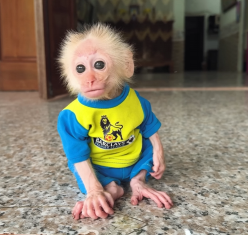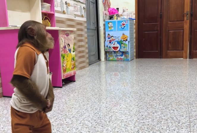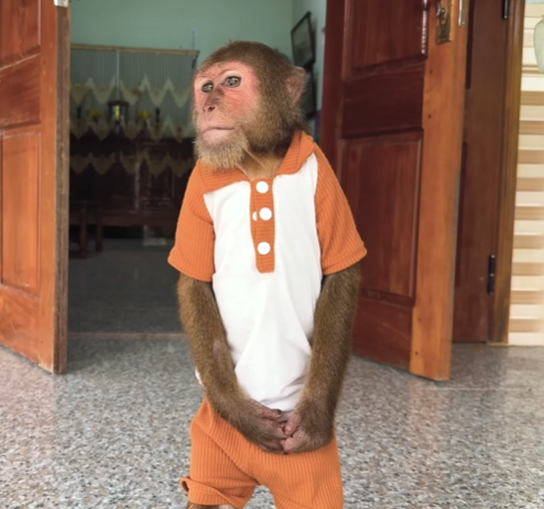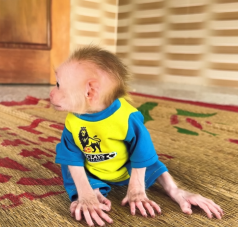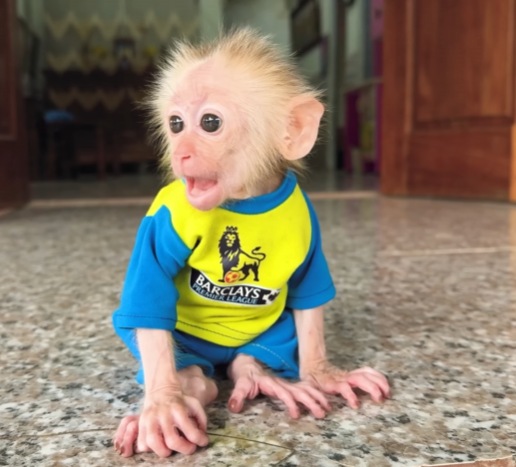 Baby Monkey blinked up curiously at CUTIS, then followed his gaze toward their mother. His little eyes widened. “Eek?” he chirped softly, confused. Mom looked uncomfortable, maybe even in pain. He hopped to his feet and raced toward her tiny legs, gently tugging her fur as if to ask, What’s wrong, Mommy? Why aren’t you smiling?