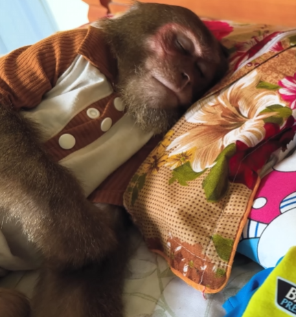 Baby Monkey curled beside her belly, humming soft little sounds to keep her company. “Eek… eek…” His confusion hadn’t disappeared, but now he felt safer. CUTIS was here. The helpers were here. Mom wasn’t alone.