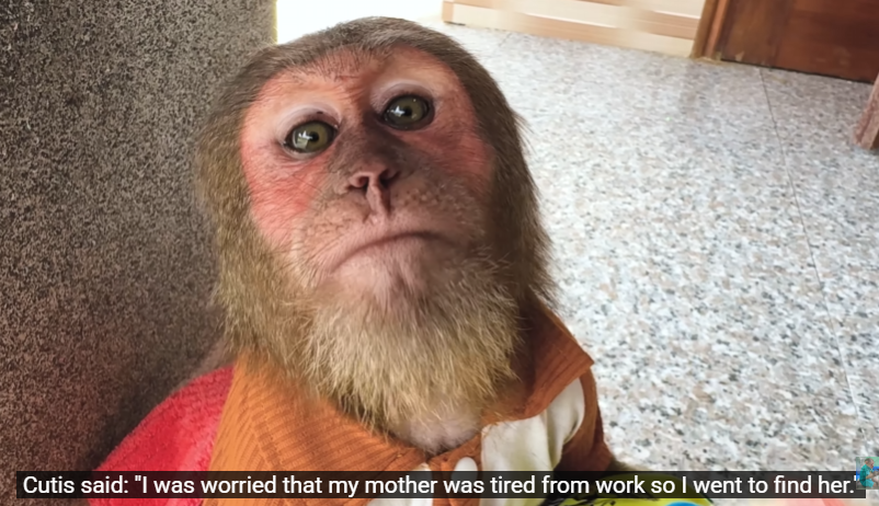 CUTIS’s heart pounded. He had seen Mom tired before, hungry, moody, irritated—but this was different. This was fear. And CUTIS, though brave, didn’t know what to do. Baby Monkey climbed onto Mom’s shoulder trembling, nuzzling her cheek, begging her with soft cries to feel better.