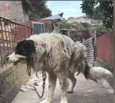 For months, Mira had lived alone in a field behind an abandoned property. Neighbors had seen her wandering, searching for scraps, but she always fled the moment someone tried to approach. The wounds on her body suggested she had once been tied with a rope too tight, probably for years, leaving scars around her neck like a cruel necklace she could not remove. Her legs were stiff, weakened by lack of nutrition. Her eyes showed the numbing exhaustion of a soul who had learned to expect nothing good from humans.