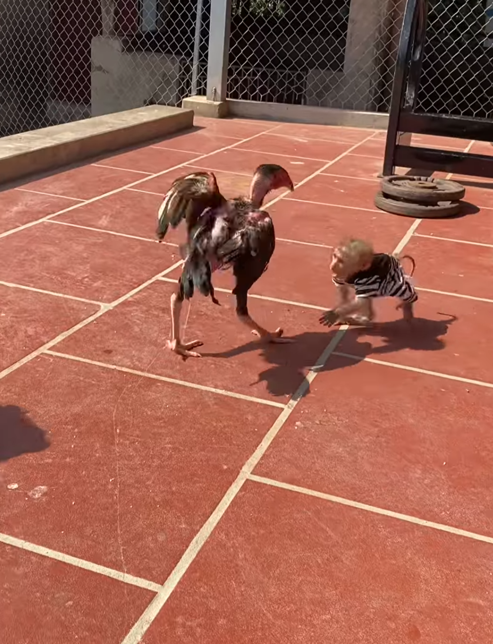 In fact, it seemed like the rooster finally understood—this little monkey wasn’t trying to cause trouble. He just wanted attention. He wanted a friend.