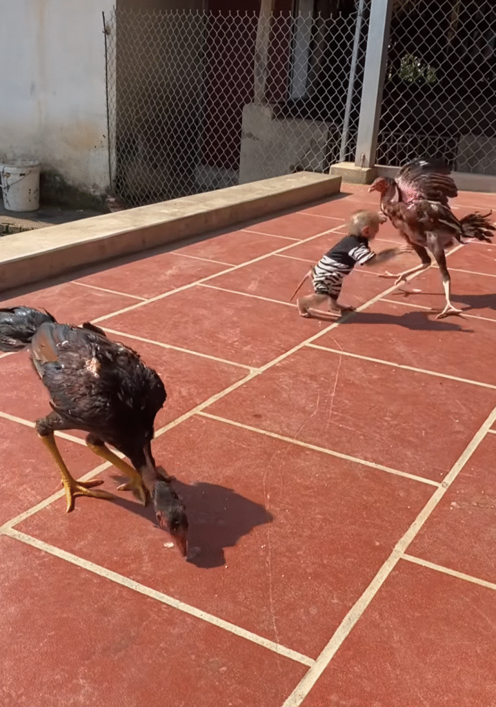 Lele had only one goal for the day: cause mischief, especially toward someone he found endlessly funny—the rooster, a proud bird with bright feathers and an even brighter attitude.