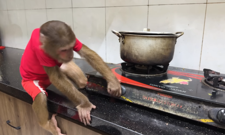 The baby monkey suddenly looked nervous. The distance wasn’t small. The rock looked far bigger now that they were preparing to jump toward it.