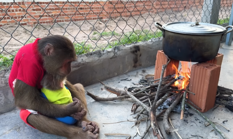 For a few precious minutes, the two stood together on the Big Rock, the river shimmering below, the forest stretching endlessly around them. It was a simple moment but powerful — a moment of courage, trust, and the quiet brilliance of a young monkey who knew how to use his mind to create possibilities.
