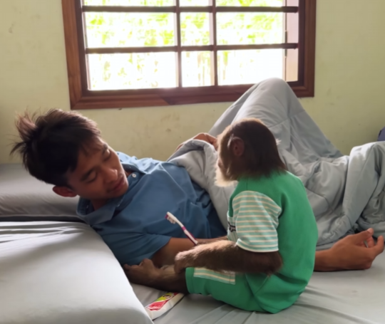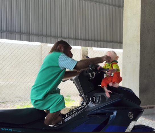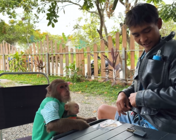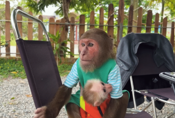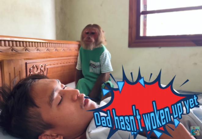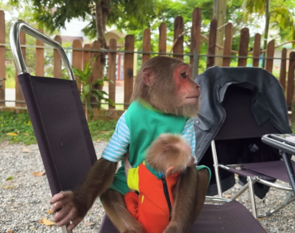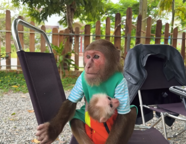 The baby monkey climbed onto Dad’s lap, dramatically crying, “CUTIS broken! We need Dad! Hurry!”