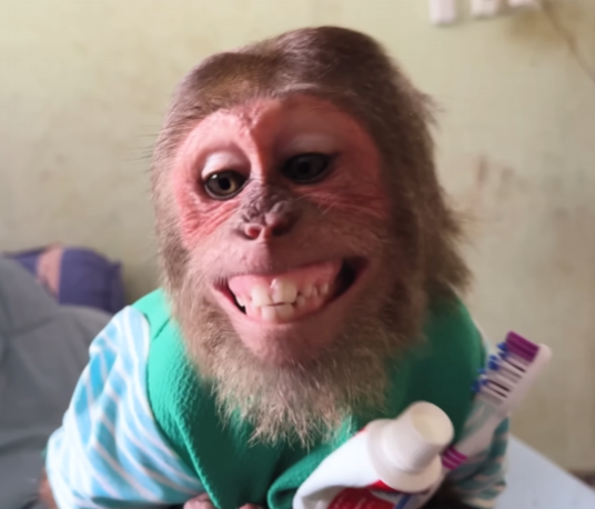 The baby monkey gasped loudly, then tried to “revive” CUTIS by slapping his cheeks gently.