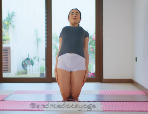 She stood tall at one end of her mat, feet grounded, palms resting lightly on her thighs. The air felt cool on her skin, refreshing, energizing.