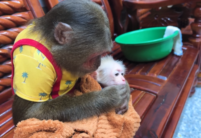 Baby Monkey blinked, then patted CUTISâs cheek gently as if saying, Missed me that much, huh?