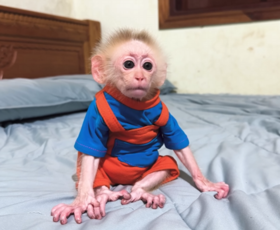 Baby Monkey yawned, rubbing his eyes with both tiny fists. Big day? He tilted his head. His tail curled in curiosity.